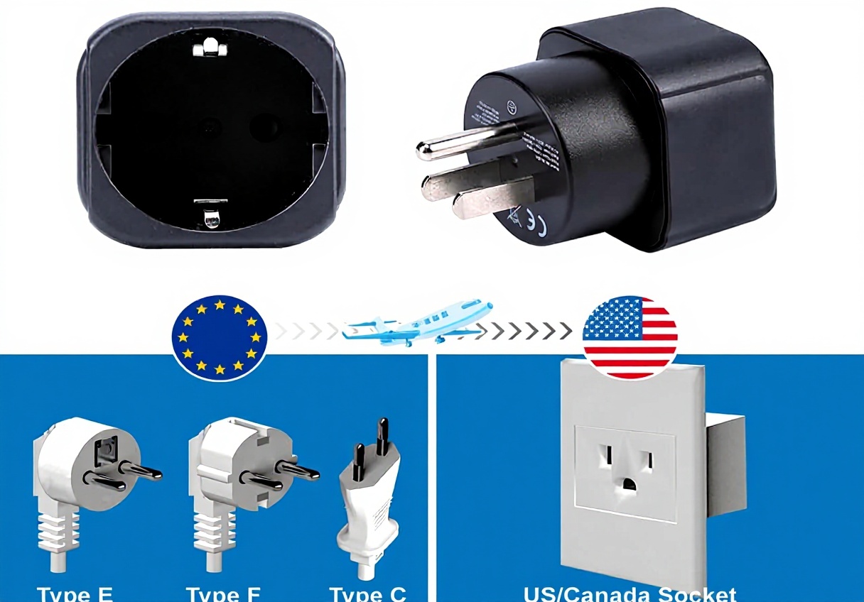 Conçu pour les voyageurs fréquents en provenance d’Europe (France, Allemagne, Espagne, Italie, etc.) se rendant en Amérique du Nord. Parfait pour les professionnels en déplacement, étudiants à l’étranger ou touristes souhaitant utiliser leurs appareils électroniques en toute sécurité.
