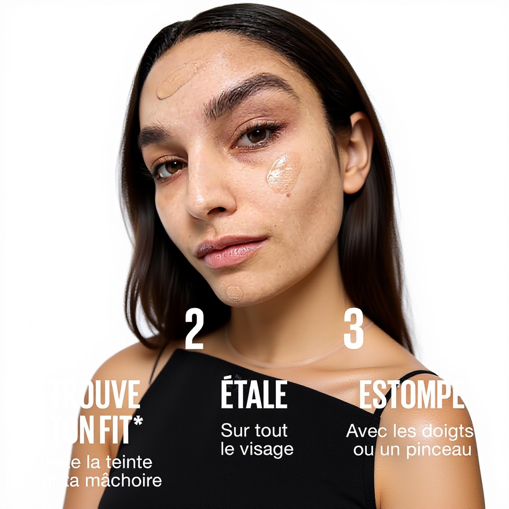 Déposez une noisette de produit sur le visage et étalez-la uniformément avec les doigts ou un pinceau pour un teint homogène et lumineux.