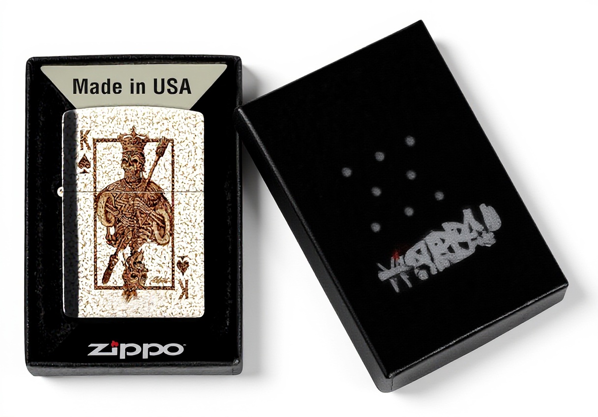 Ce briquet tempête Zippo arbore un design exclusif crâne as signé Rick Rietveld, avec un fini aspect verre mercurisé qui capte la lumière. Fabriqué en laiton durable aux États-Unis, il est rechargeable, réutilisable et doté d’un mécanisme coupe-vent fiable. Son clic caractéristique et sa garantie à vie en font un produit culte et fiable.