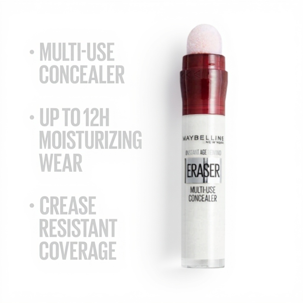 Le correcteur Maybelline Eraser combine une formule infusée à la baie de goji et au Haloxyl pour illuminer et rafraîchir le contour des yeux. Sa texture douce offre une couverture immédiate des imperfections tout en atténuant visiblement les poches sous les yeux.