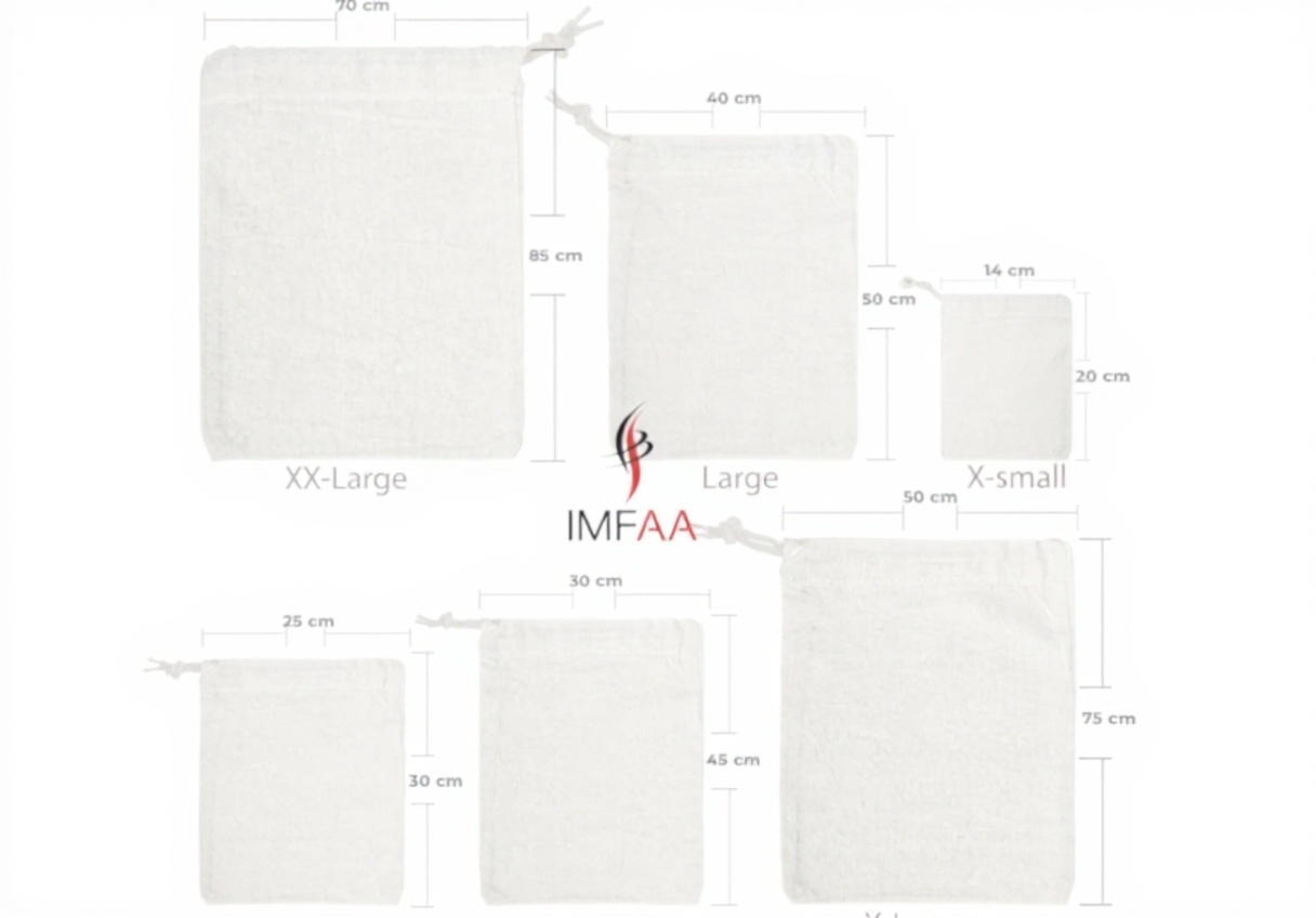 Le modèle taille M mesure 30 x 45 cm et pèse 430 grammes pour le lot de 10 sacs. Fabriqué en coton naturel, il est lavable en machine sans nécessiter de piles. Conforme au numéro de modèle IMFAA Natural Sack Bags, il offre une durabilité accrue.